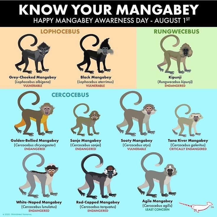 - Donate or volunteer at organizations like World Wildlife Fund, or the above organizations that work with local communities to protect mangabey habitat and ban the hunting and poaching of mangabeys.