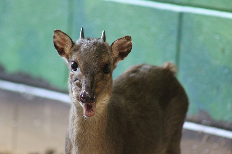 Duikers (pronounced die-ker) are African antelopes, and blue duikers are the smallest of all duiker species. The main difference between deer and antelopes is the protrusions on their head. While deer have branched antlers that are shed and regrown annually, antelopes such as the blue duiker have non-branched, permanent horns. Both males and females have short, sharp horns (although not always present in the females). Scent glands are located near the rear hooves and below each eye.