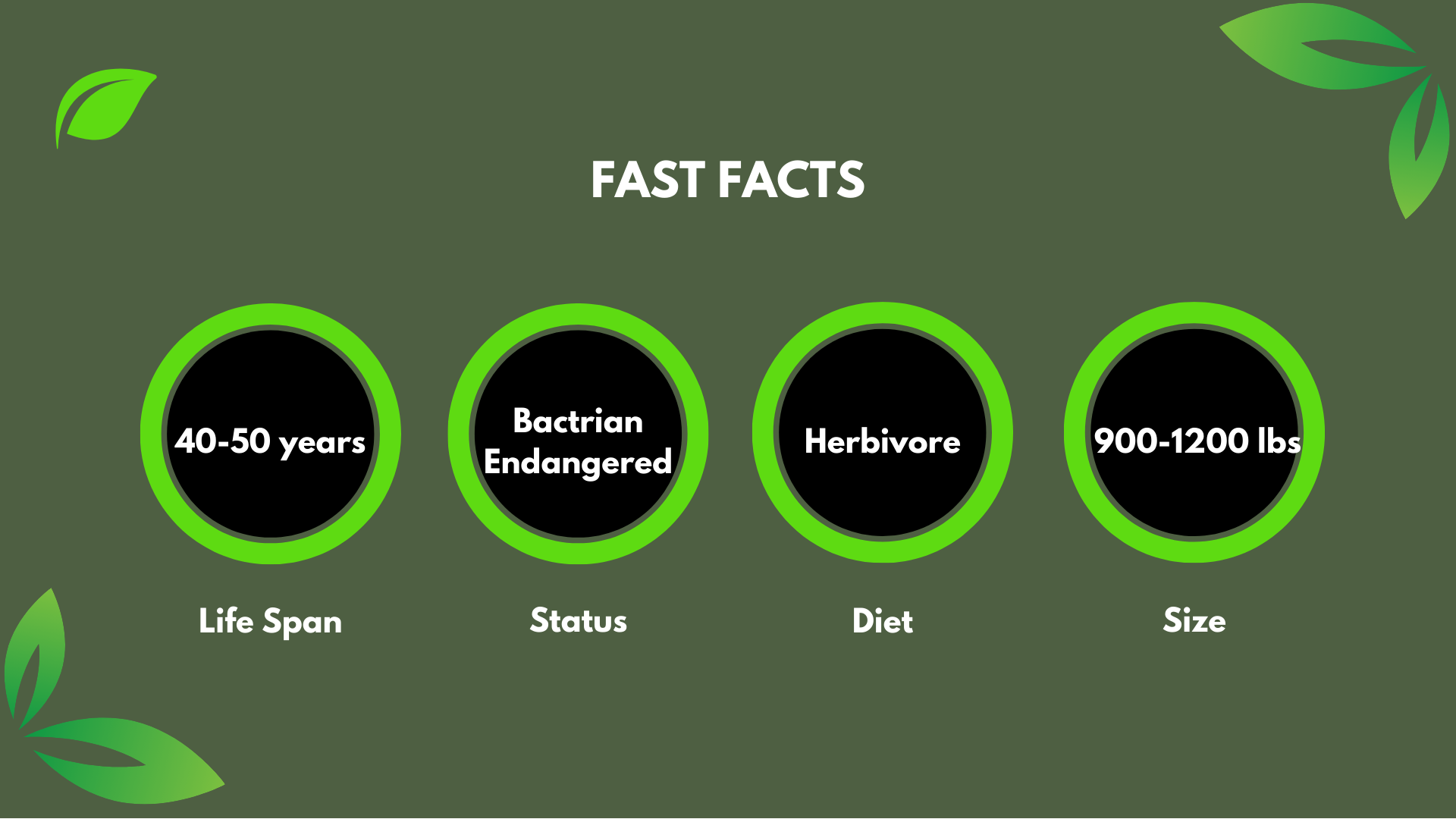 Bactrian camels (Camelus ferus). The majority of camels are domestic. The only wild camel species, wild Bactrian camels, are only found in just a few locations in China and Mongolia. At the Chattanooga Zoo, you can see dromedary camels. They are the tallest of the three species of camel. Dromedary camels exist today only as a domesticated animal. They have not occurred naturally in the wild for nearly 2,000 years. The earliest evidence for dromedary domestication dates to about 4,000 years ago on a small island off the Abu Dhabi coast. Northern Arabian tribes began to use dromedary camels as riding animals around 3,100 years ago. About 90% of the world’s camels are dromedaries.