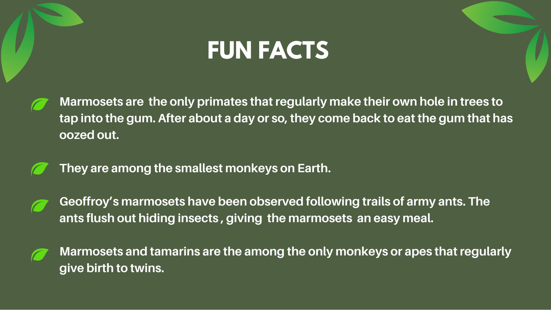 While our marmosets are not an animal you can get an up-close experience with, you can sign up for a cotton-top tamarin wild animal encounter and go behind the scenes for an up-close visit. Click here to learn more. ____________________________________________________________
