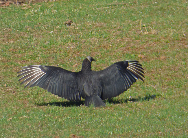 Black vultures are good at finding “thermals” which they use in soaring to high elevations. They are more visual hunters than the turkey vulture and often watch turkey vultures from above. Once food (carrion) is located, the black vulture, being more aggressive, often drives away the turkey vulture from its newly found meal. Vultures prefer meat as fresh as possible and won’t eat extremely rotted carcasses. They can smell carrion only 12-24 hours old.